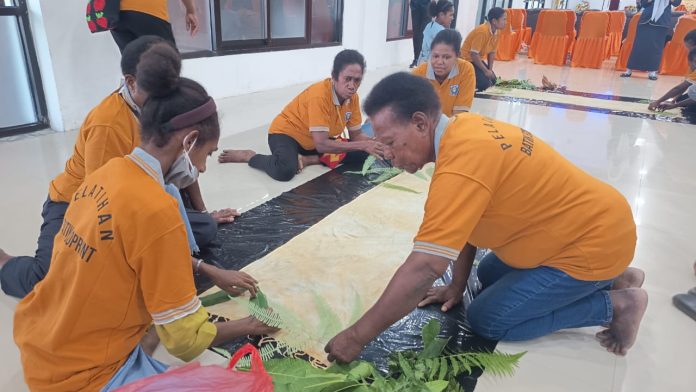 SORONG- Sebagai bentuk komitmen dalam mengembangkan potensi ekonomi kreatif dan memperkuat kapasitas pelaku pariwisata lokal, Dinas Pariwisata, Pemuda, dan Olahraga Kabupaten Sorong menyelenggarakan pelatihan batik ecoprint bagi anggota kelompok sadar wisata (Pokdarwis).
