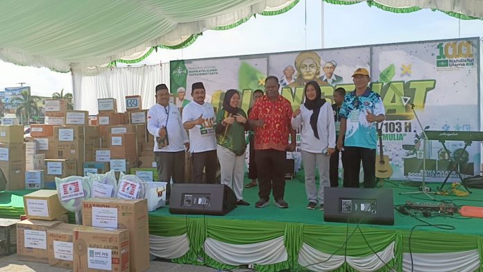 “Karena ini peringatan 100 tahun NU, saya hadiahkan dua orang untuk berangkat umrah. Ini bukan untuk kelompok tertentu, tetapi untuk semua yang ikut memeriahkan acara ini,” ucapnya disambut tepuk tangan meriah peserta.