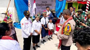 Kodim – 1807/ Sorsel juga menyerahkan bantuan berupa sarana olahraga untuk pemuda Distrik Konda sebagai bentuk dukungan terhadap pembangunan karakter dan kesehatan generasi muda.