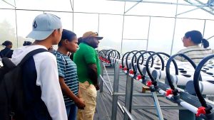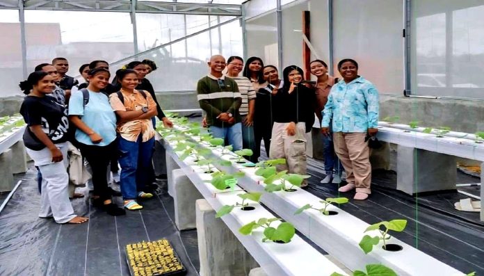 Para mahasiswa disuguhi langsung penerapan dua teknik utama hidroponik NFT (Nutrient Film Technique) dan DFT (Deep Flow Technique) yang digunakan dalam budidaya sayur dan buah di lokasi tersebut.