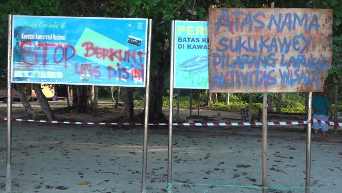Tak hanya menutup lokasi wisata, warga adat juga mengusir kapal-kapal turis dan wisatawan dari kawasan yang selama ini menjadi magnet wisata dunia itu. Mereka menyatakan kekecewaan, lantaran sektor pariwisata selama ini dinilai tidak memberikan dampak ekonomi langsung, bagi masyarakat adat. Mereka akan membuka kembali objek wisata tersebut, jika presiden mengembalikan IUP PT KSM.