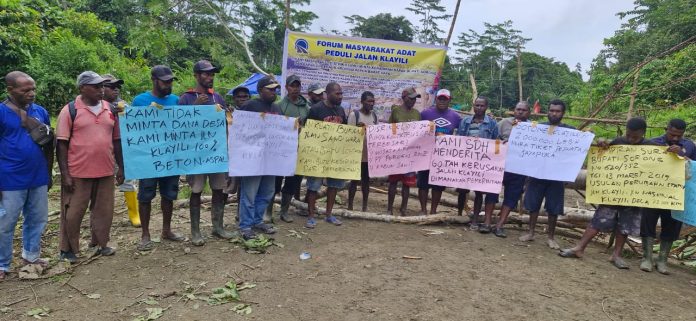 SORONG – Sudah 21 tahun lebih Otonomi Khusus (Otsus) di Tanah Papua berjalan, namun sungguh keterisolasian masih belum tuntas ditangani. Buntut dari itu, masyarakat melakukan pemalangan jalan Aimas ke Distrik Klayili, Kabupaten Sorong.
