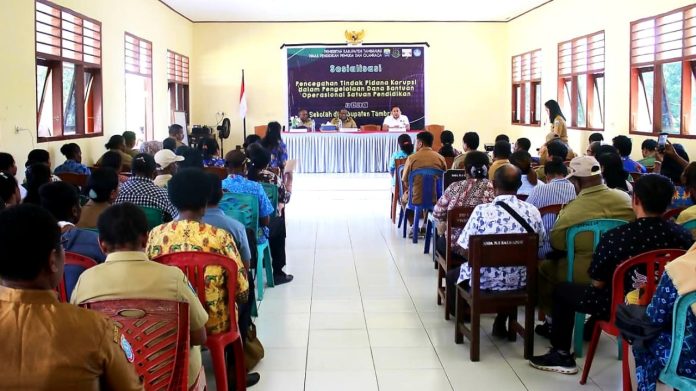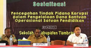 TAMBRAUW – Bupati Tambrauw, Yeskiel Yesnath, SE, M.Si secara resmi membuka kegiatan Sosialisasi Pencegahan Tindak Pidana Korupsi dalam Pengelolaan Dana Bantuan Operasional Satuan Pendidikan (BOSP) dan Bantuan Operasional Pendidikan (BOP) bagi sekolah-sekolah di Kabupaten Tambrauw, Provinsi Papua Barat Daya.