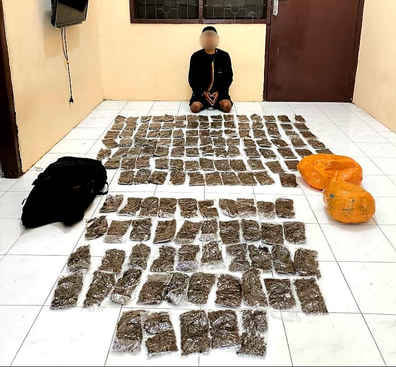 Dari tangan tersangka Polisi amankan 1 (satu) buah tas bermerk Rush, 1 (satu) paket besar berisi 100 plastik bening ukuran besar berisi ganja, 1 (satu) paket sedang berisi 45 plastik bening ganja, 2 (dua) paket plastik coklat diduga ganja kering dengan total berat 3,676 kilogram.
