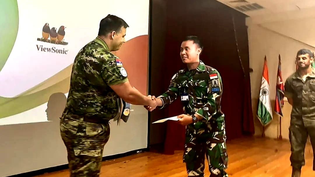 Pratu (Mar) Ega Prayudha dari Batalyon Zeni 3 Marinir, yang tergabung dalam Satgas TNI Kontingen Garuda (Konga) Yonmek XXIII-S UNIFIL 2025 berhasil meraih penghargaan bergengsi dalam Explosive Hazards Awareness Training (EHAT) yang digelar di UNP 7-2, Multinational Brigade Sector East, Lebanon.