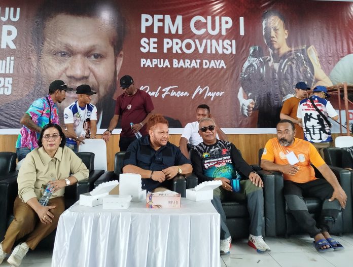 KOTA SORONG – Hari kedua pelaksanaan Kejurda Tinju Amatir PFM Cup I, Senator Paul Finsen Mayor hadir ke lokasi pertandingan. Tak lama berselang, hadir juga Wakapolda Papua Barat Daya Kombes Pol. Semmy Ronny Tabhaa. Keduanya mengunjungi pertandingan untuk menyemangati para atlet yang berlaga pada hari itu.