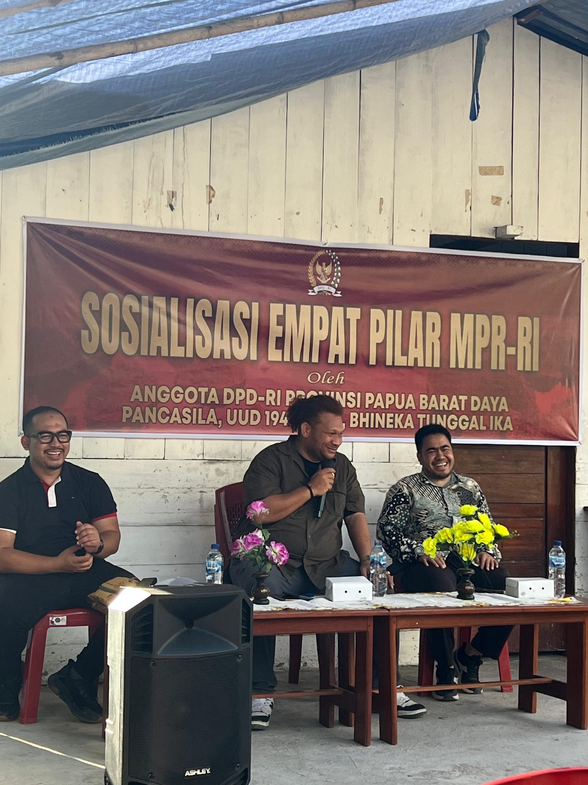 SORONG – Dengan penuh semangat dan tanpa lelah, Anggota DPD RI/MPR RI daerah pemilihan Papua Barat Daya, Paul Finsen Mayor melakukan sosialisasi empat pilar kebangsaan kepada masyarakat.