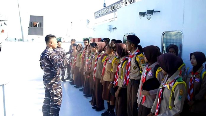 Sorak kagum dan antusiasme tampak dari raut wajah para pelajar, yang sebagian besar baru pertama kali menaiki kapal perang kebanggaan bangsa ini.