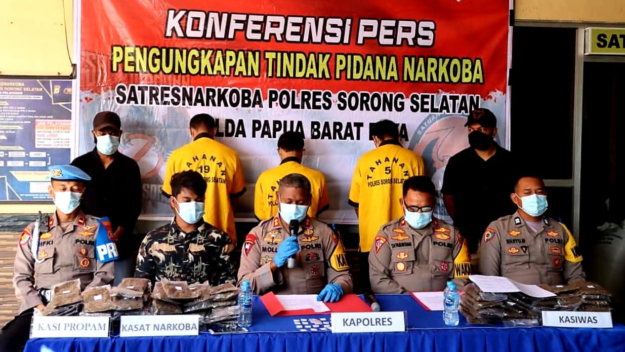 “Dari ketiga tersangka, kami berhasil menyita barang bukti narkotika berupa sabu seberat total 23,64 gram dan ganja seberat 3,318 kilogram. Saat ini seluruh tersangka masih dalam proses penyidikan, dengan modus operandi yang berbeda-beda,” ungkap Kapolres Sorong Selatan, AKBP. Gleen Rooi Molle, SIK, Jumat (25/06/2025).
